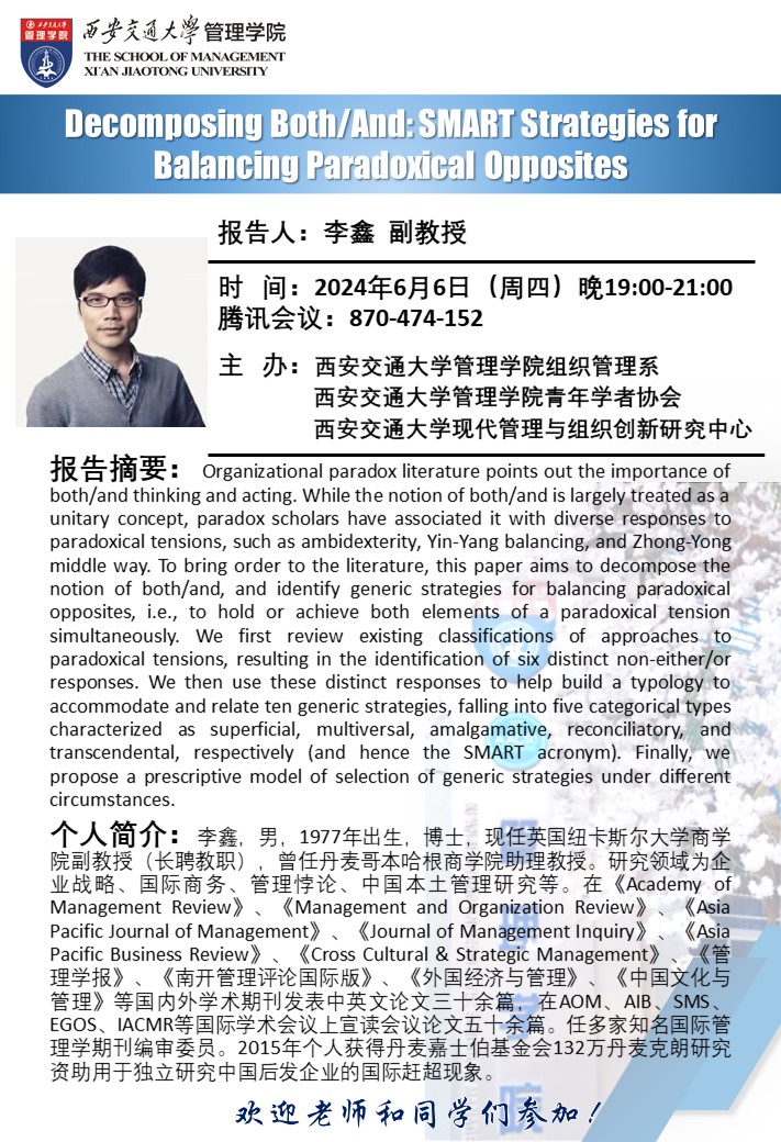 讲座:Decomposing Both/And: SMART Strategies for Balancing Paradoxical Opposites