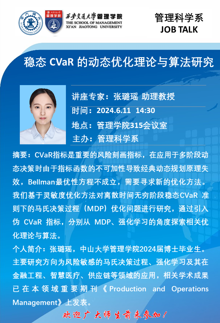 讲座:稳态 CVaR 的动态优化理论与算法研究