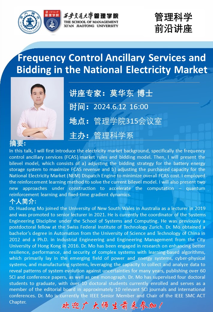 讲座:Frequency Control Ancillary Services and Bidding in the National Electricity Market