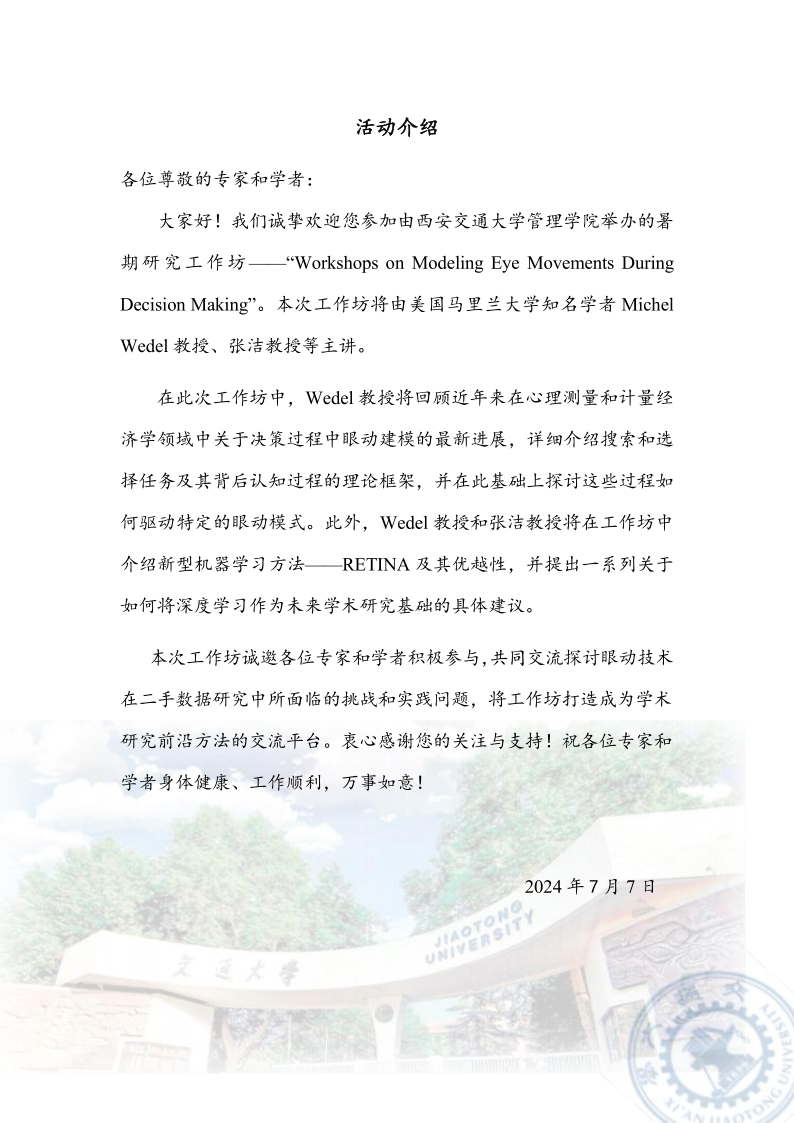 会议通知:Workshops on Modeling Eye Movements During Decision Making