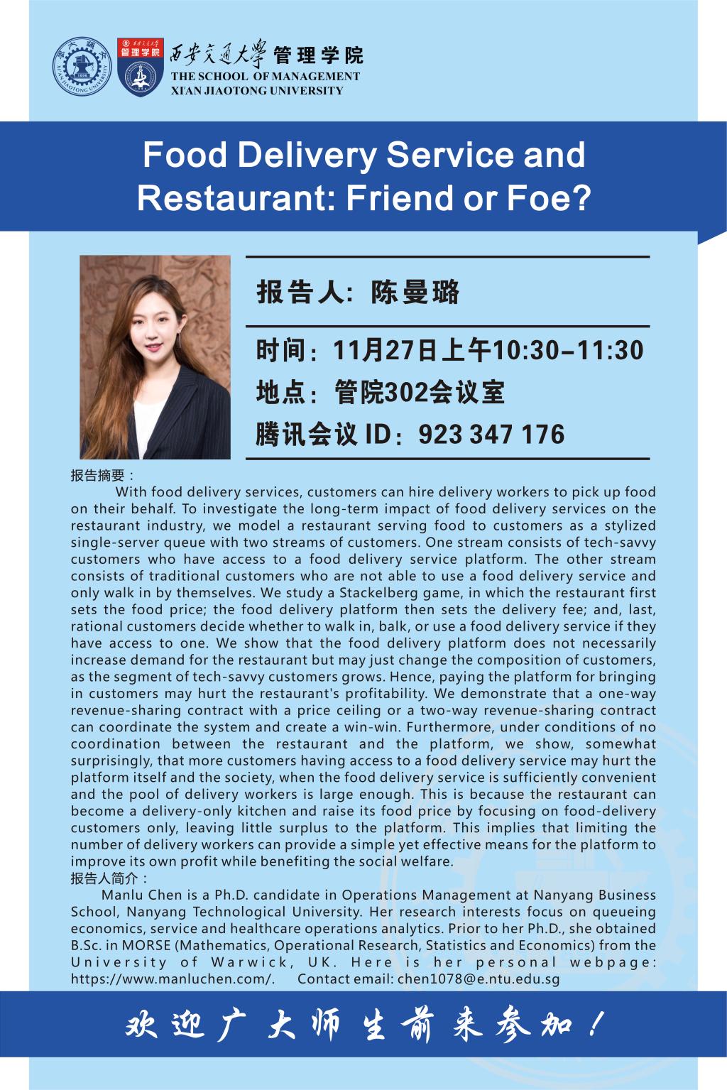 报告题目:Food Delivery Service and Restaurant: Friend or Foe?