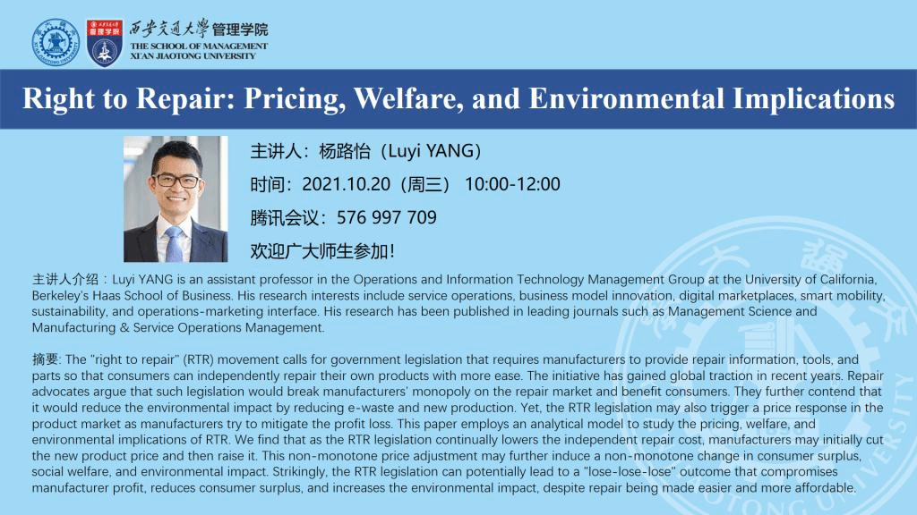 题目:Right to Repair: Pricing, Welfare, and Environmental Implications