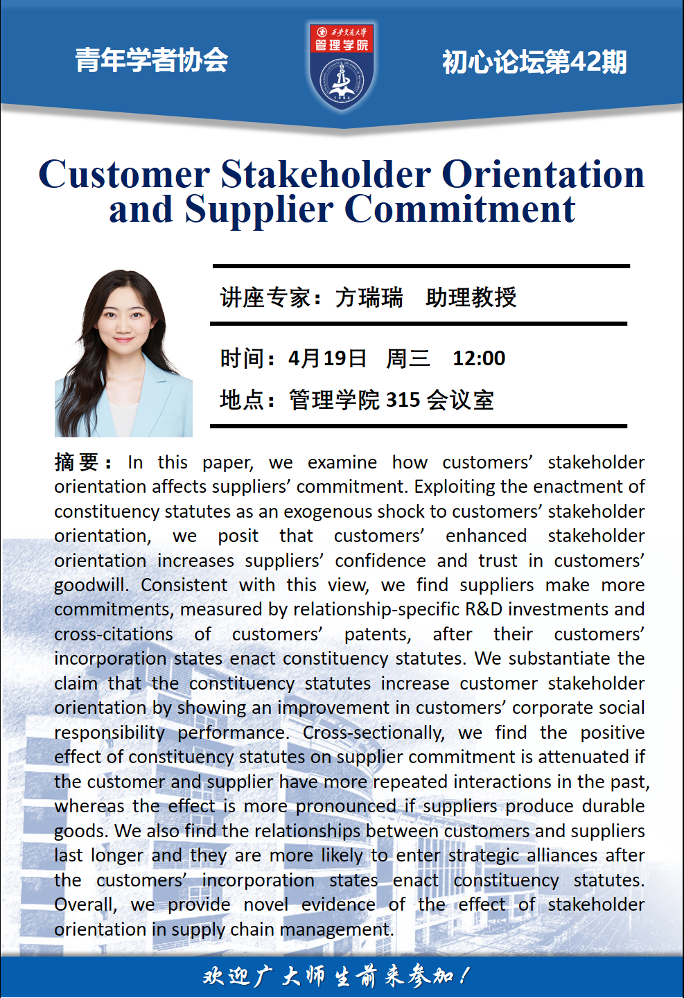 题目:Customer Stakeholder Orientationand Supplier Commitment