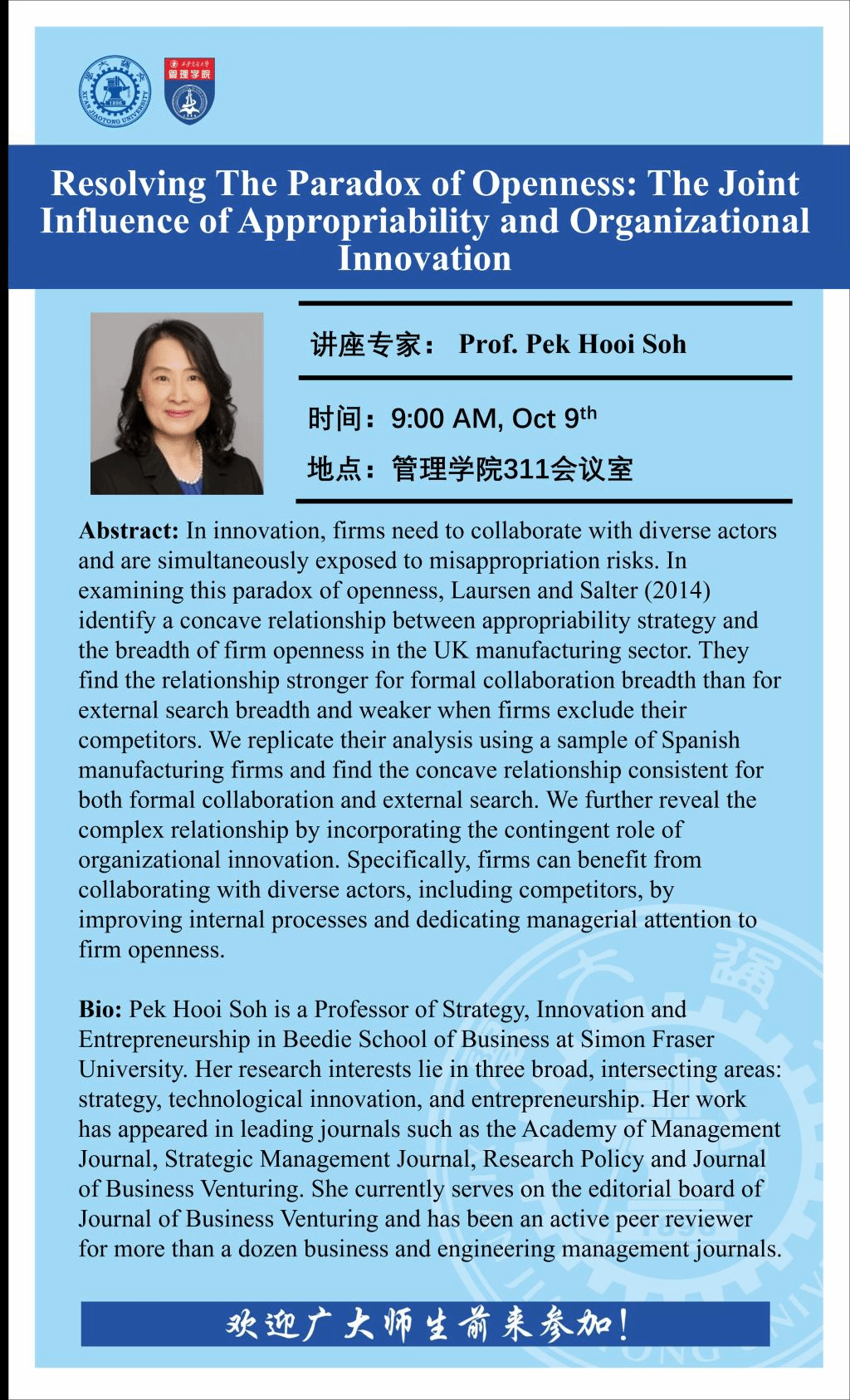 题目:Resolving The Paradox of Openness: The Joint Influence of Appropriability and Organizational Innovation 2023-09-22