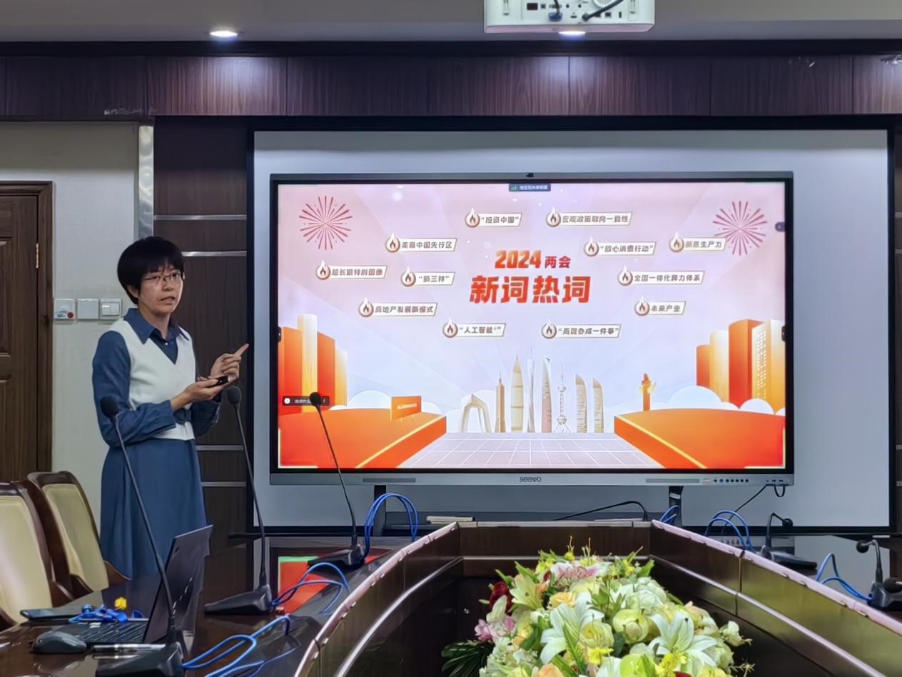 会议的中心议题聚焦于深入学习“2024年两会政府工作报告”。耿葳书记带领支部党员回顾了2023年全国取得的突出业绩和成就,详细解读了2024年两会中出现的新词热词,并剖析了2024年的主要预期目标和重点工作。结合案例了解两会热词“新质生产力”,通过AI数“读”两会,并且对超长期国债的内容与意义有了更为清晰的认识。