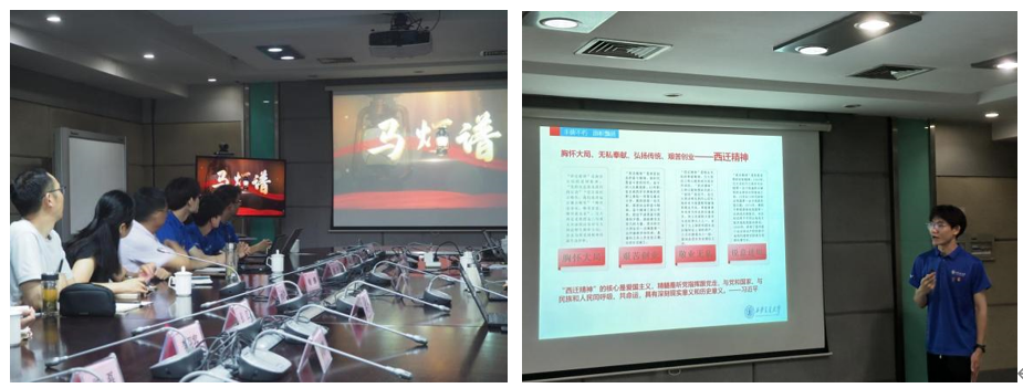 的发展历程,实践队长周云生做了“西迁精神”的宣讲,他们沿着交通大学的迁校背景和历史脉络缓缓展开,将那段波澜壮阔的西迁和学院发展的历史的画卷生动地呈现在大家眼前。