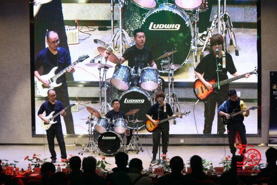 学生自组的乐队“麦内吉蒙特乐队"用摇滚歌曲《彩虹》和《Nofears in my heart》拉开了晚会序幕