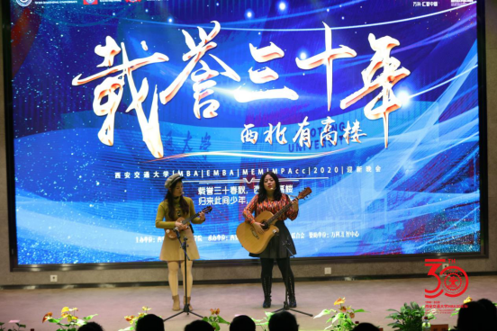 MBA9162班的李妮、李玥萱以吉他弹唱《一起向前走》充分挥洒青春梦想,让青春在最灿烂的年华恣意绽放。