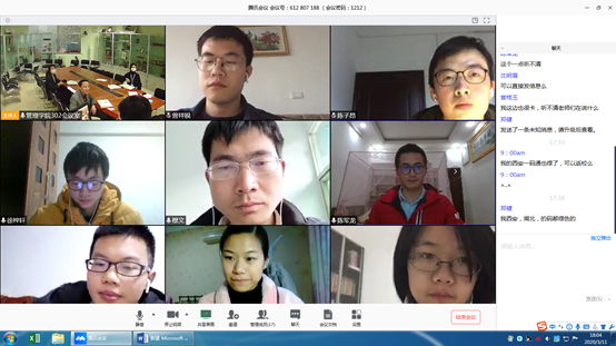 参会老师认真听取了同学们的情况,了解到了大家良好的生活状态,对同学们提到的一些问题也一一进行解答,提出了解决问题的办法。比如学院可以帮助同学们将放置在学校的必需学习用品寄送回家中、帮助大家通过校内网下载参考文献进行研究,建议家里没有网络的同学积极申请学校设立的网络补助等。同时,老师们表示大家如果遇到困难要及时跟学校沟通,大家一起想办法战胜困难。