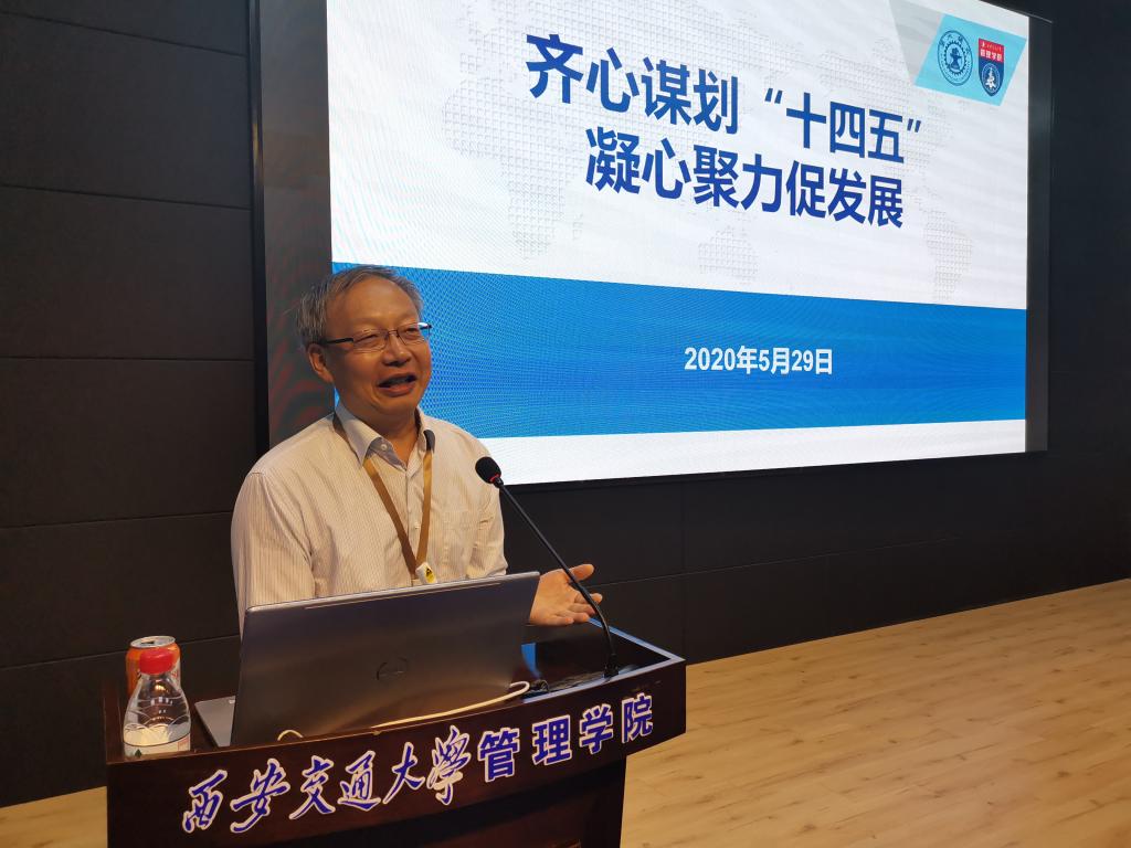 会上,冯耕中院长总结了学院2020年1月至5月在学科发展、科学研究、队伍建设、人才培养、管院教育国际化战略3.0、思想文化建设等方面取得的成绩;结合当前国际国内环境态势和新冠疫情造成的影响,对学院学科发展进行了分析;并就学校“十四五”规划、“跑五”工作和创新港平台建设的要求,以及学院未来的发展规划和重点工作部署进行了介绍;号召全体教职工结合学院实际情况,一起为“十四五”规划群策群力,共同绘就学院未来发展蓝图。