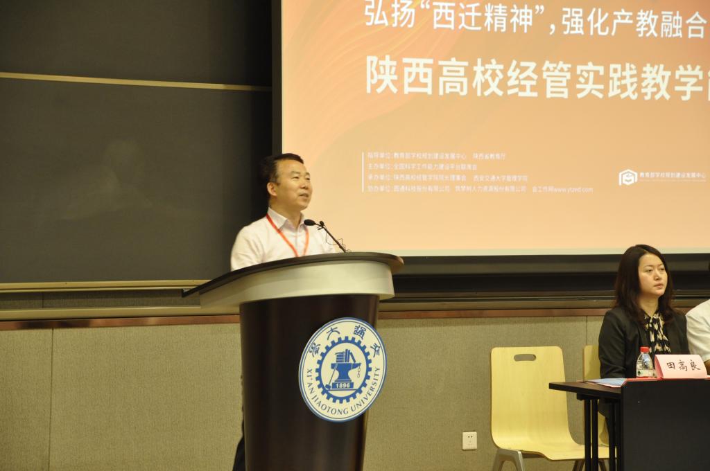副院长田高良教授作了主题演讲“提高双一流高校经管类专业大学生工作能力探索与实践”。他表示,作为国家双一流院校应当主动作为教育改革创新和提升学生工作能力实践教学的引领者,为新商科教学创新改革路径和双一流大学走向产教深度融合发展提供有力的保障。近年来,田教授积极参加产教融合活动,先后主持完成教育产学合作协同育人项目6项,陕西省重点教学改革项目2项,荣获陕西省教学成果一等奖、陕西高校科学技术一等奖、 “圆通制杯”全国大学生工作能力竞赛团体一等奖等奖项10余项。