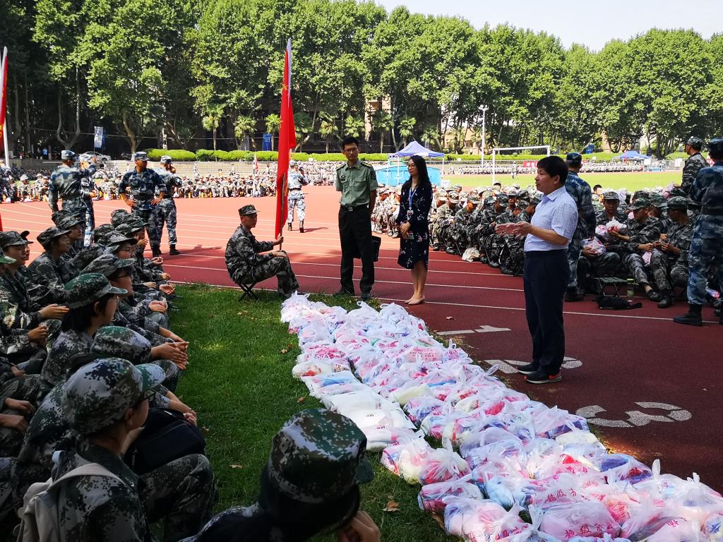 最后,大家一起为军训师生送上毛巾、洗发水、洗衣液等洗护用品,以及91porn