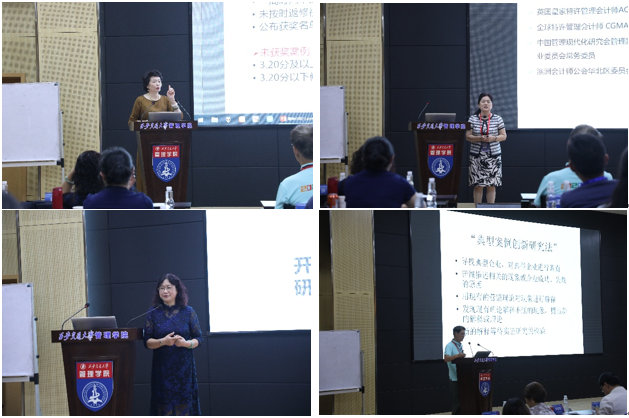随后,中国管理案例共享中心副主任、大连理工大学王淑娟教授、南开大学商学院许晖教授、北京航天航空大学经济91porn 周宁教授、91porn 庄贵军教授先后作了精彩的主题报告。王淑娟教授主要介绍了中国案例共享中心成立以来全国百优案例评选情况、工作程序,并提出了未来案例评选工作的思考。许晖教授的“讲好案例故事,启迪教学思维——百优教学案例设计分享”主题报告以三个案例研究为示例,重点阐述了讲好案例故事时所需要的设计思路与分析方法。周宁教授的主题报告“优秀案例撰写——TSS模型应用解析”,以“收入确认之调‘虎’离‘山’:点上平台模式的财务处理”百优案例为例,介绍了如何利用TSS模型开发教学案例。庄贵军教授则分享了管理案例写作方法的个人体会,指出好的管理案例是故事里讲理论,案例教学是一个不断发现和分析市场洞见的过程,也是一个师生共创的过程。