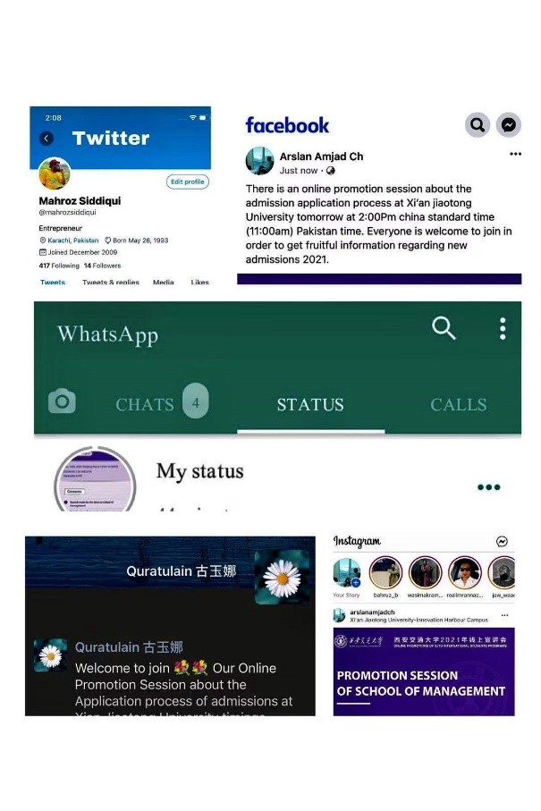 91porn 国际学生校友和在读学生深度参与、全方位助力母校招生宣传工作,将学校海外招生线上宣讲会和系列讲座宣传海报发布在WeChat、Instagram、Facebook、 Twitter、 WhatsApp等国内外知名社交媒体平台。
