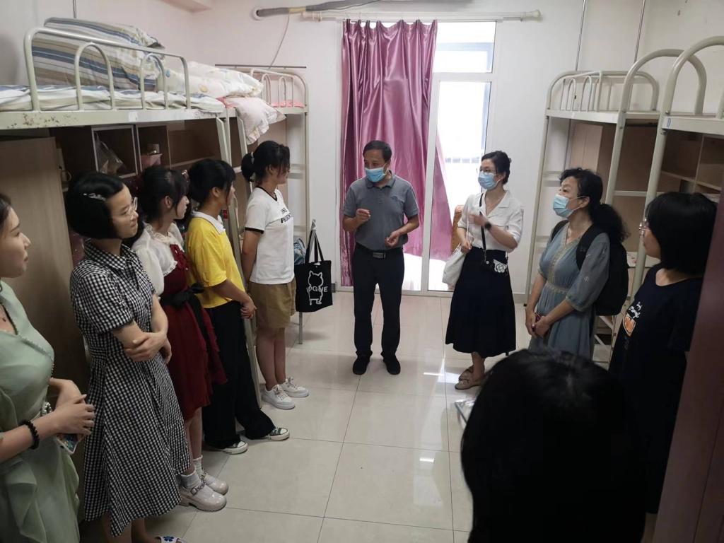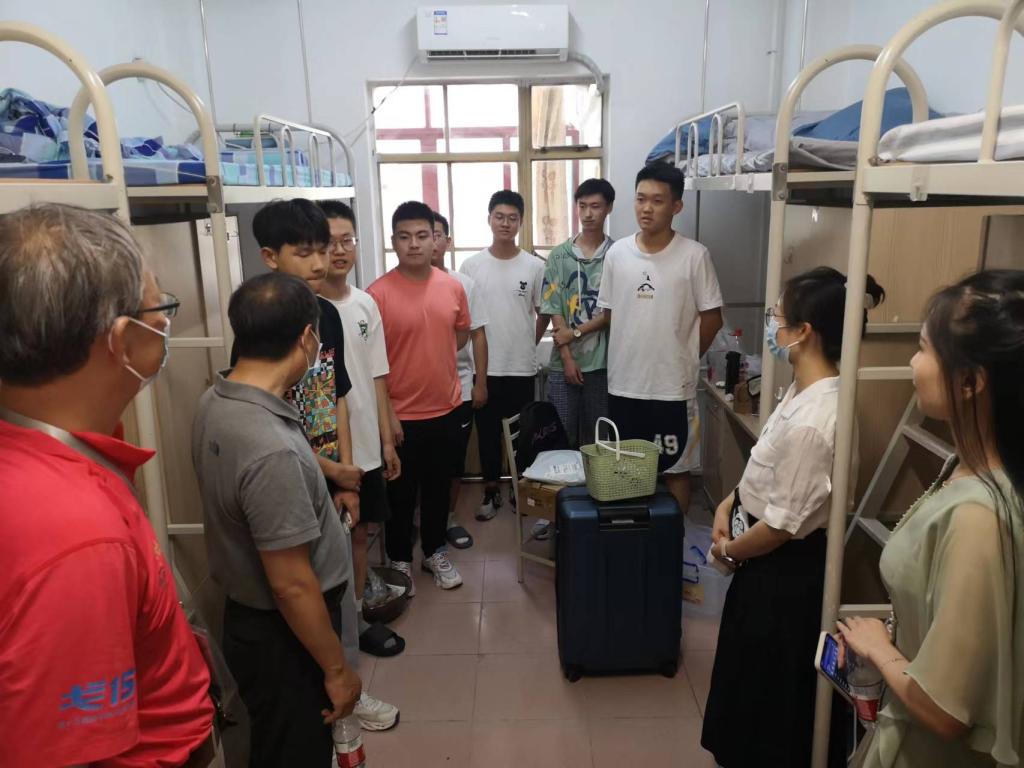 8月20日下午,在马晓彬书记和冯耕中院长、叶宁副书记的带领下,大一年级班主任代表骆蕾、郑嘉俐,辅导员胡瑛和崇实书院院务主任张丹、副主任段继超,新生辅导员姜飒一起到宿舍看望新生。