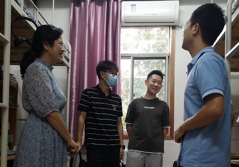 冯耕中院长、马晓彬书记、叶宁副书记和辅导员李明睿老师、胡瑛老师一起走访新生宿舍,了解入住情况。马晓彬书记勉励同学们要在新的阶段有新的作为,做好个人规划,选择合适的方向并努力拼搏,要融入团体,关心他人,在学习的同时收获友谊。冯耕中院长强调,交大人要传承和弘扬西迁精神,向汪应洛院士、席酉民教授等老一辈管院人学习,艰苦奋斗、开拓创新,在新征程上创造属于我们这代人的历史功绩。新同学们纷纷表示将努力学习,拼搏奋进,不辜负学校和老师们的殷切期望。