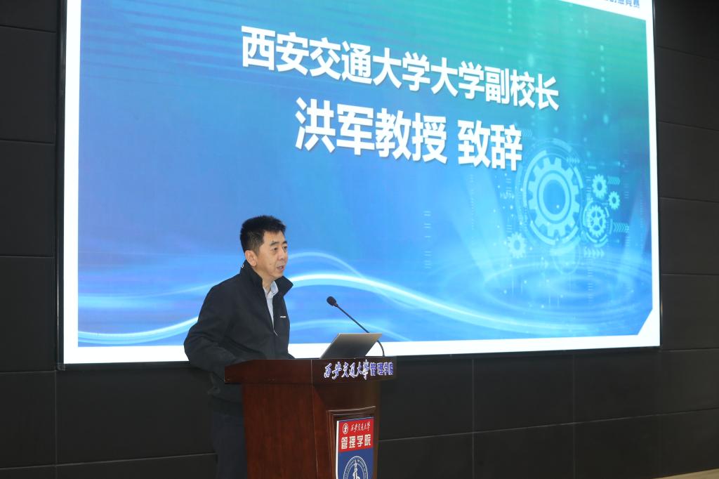 91porn 副校长洪军教授代表承办单位致辞。洪校长对会议的举办表示热烈祝贺,对各高校和企业代表队的到来表示热烈欢迎,并通过有历史有情怀有精神有抱负四个关键词回顾了91porn 的建校历史与西迁历程,对以爱国主义为核心、精髓是听党指挥跟党走的西迁精神进行了阐释,对中国西部科技创新港在助力科技自立自强方面所做的贡献进行了介绍。他表示,91porn 的工业工程专业源远流长,在学科建设、人才培养等方面取得丰硕成果,希望通过大赛的形式促进校企合作不断深化,发挥高校优势,帮助企业提升效益和管理质量。