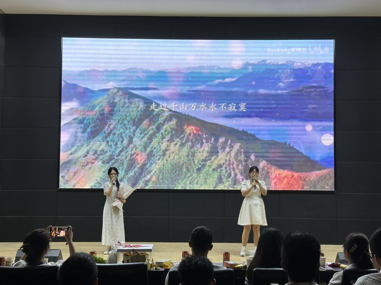 屈斐和郭玉莹演唱的凤凰传奇歌曲串烧带动了全体同学一同歌唱,邵乙洛带来的舞蹈《醉太平》舞出了平安盛世。
