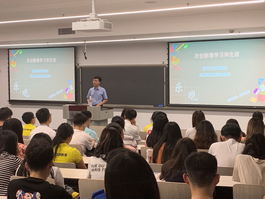 辅导员李明睿老师为全院创新港新生开展了一次系统的新生养成教育。李老师从研究生课程学习和科研训练、人际交往和沟通、心理健康和体育锻炼、人生目标和职业生涯规划、学生组织和发展、奖助学金和违纪处分、校园文化和安全等多个方面进行介绍,将研究生阶段同学们可能面临的问题进行了提示,指出了正确应对各类问题的方法,让同学们及早树立了自信、规划好研究生生活,用端正的态度和积极的心态迎接新的人生阶段。