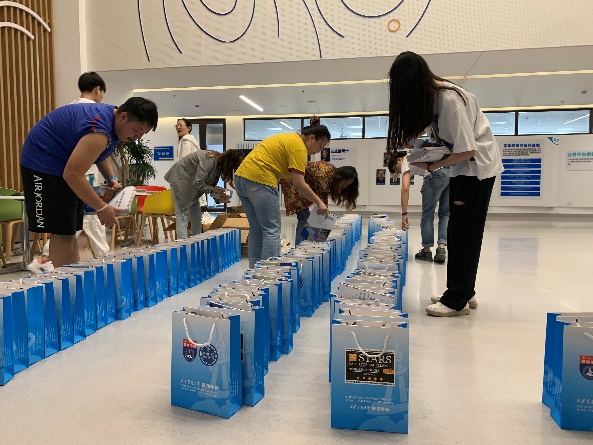 提前为每位一位新生订做了创新港文化衫,印有管理研究院标志,希望展现新生的全新气象。除此之外,还为每一位新同学准备了开学“大礼包”,包括口罩、体温计、院徽、新生手册、校历、定制相框、空气进化膏等。