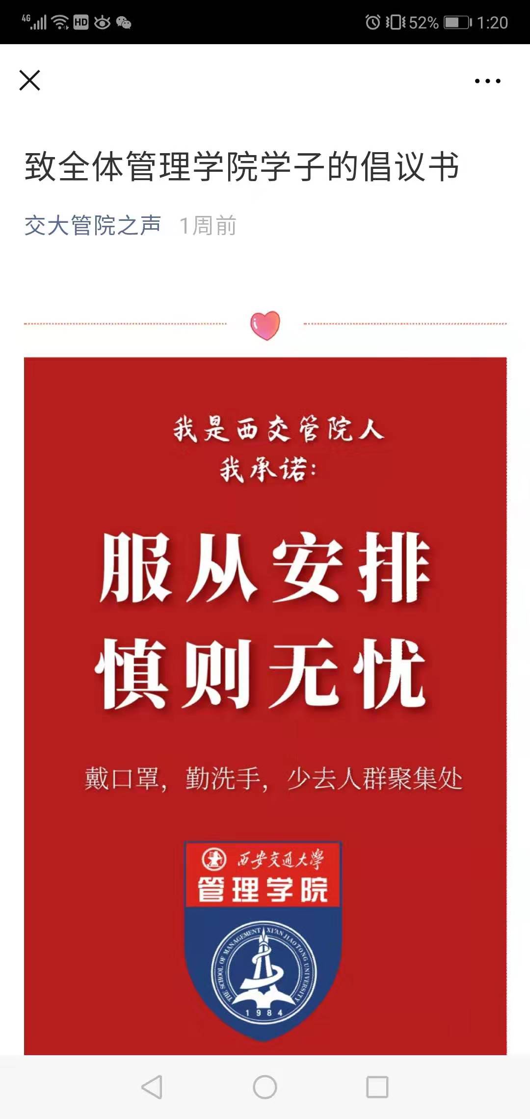 自湖北省武汉市新型冠状病毒感染的肺炎疫情发生以来,91porn 坚持学习传达习近平总书记在中共中央政治局常务委员会会议上重要讲话精神,严格贯彻落实教育部、陕西省教育厅、学校相关要求,切实做好新型冠状病毒感染的肺炎疫情防控工作。