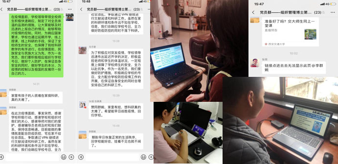 14个学生党支部积极响应学校和学院的统筹安排,主动带领各党员同志及同班同学进行“西安交大同上一堂课”线上学习。疫情当前,攻克时艰,学校的工作安排有条不紊地推进着。虽然不能按时返校正常学习科研,但各校领导在部署好学生疫情防控的同时,又详细统筹安排了学校的本科生、研究生、留学生、毕业生等各个类别学生群体的学习教育工作,既增加了同学们对抗疫情的决心,也增强了大家在家努力科研的信心。课程结束后,各党员同志感慨万千,纷纷表示收获颇多。