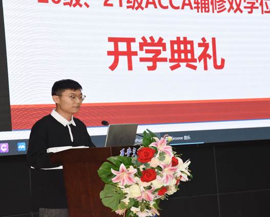 启德书院院务主任张王民代表各书院致辞。“西安交大是一所能在浮躁世界中放下一张平静书桌的地方”,五湖四海的优秀学子相聚于此,ACCA辅修双学位班更是将来自各个书院的同学们凝聚,这种学科交叉与融合的热情氛围值得同学们珍惜。他表示,每个人都有惰性、滞后性,却总有人走在他人前列,希望大家克服自身惰性,勤于思、勤于学、勤于问;ACCA在交大已走过整整20年,今年尤其有着非凡的意义,选择ACCA就更要付出多于常人的努力;大学的前三年尤为重要,本科期间的学习主要集中在这期间,“起点高、基础厚、要求严、重实践”是西交大的传统,如何做好时间规划就显得尤为重要。他最后嘱咐学生,既然勇敢迈出第一步,选择ACCA,就要不忘初心,砥砺前行。