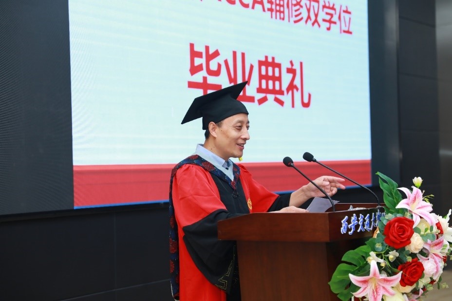 叶明主任代表书院祝贺来自各个书院、各个学科的优秀学子圆满毕业。叶明主任引用习总书记在中国人民大学的讲话“不负韶华,不负时代,不负人民,在青春的赛道上奋力奔跑,争取跑出当代青年的最好成绩”勉励学子,未来的路途很遥远,要有雄心壮志和使命担当。以青春为桨,以梦想为帆。