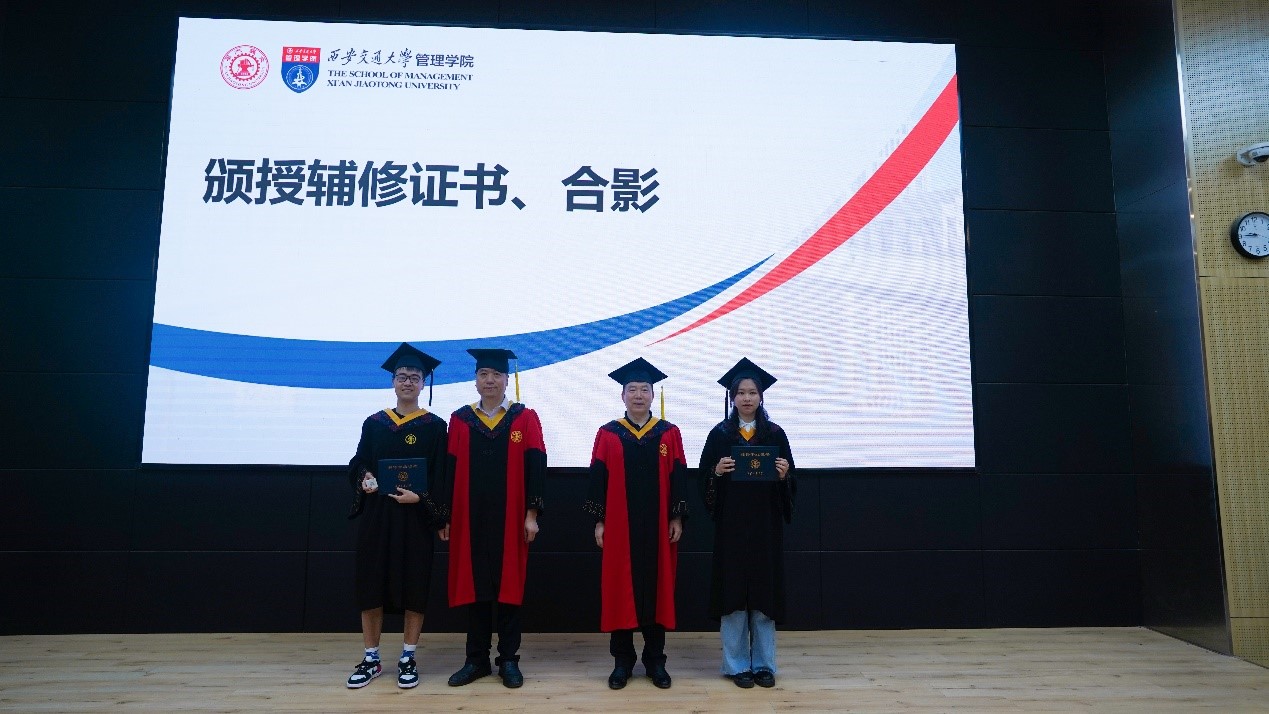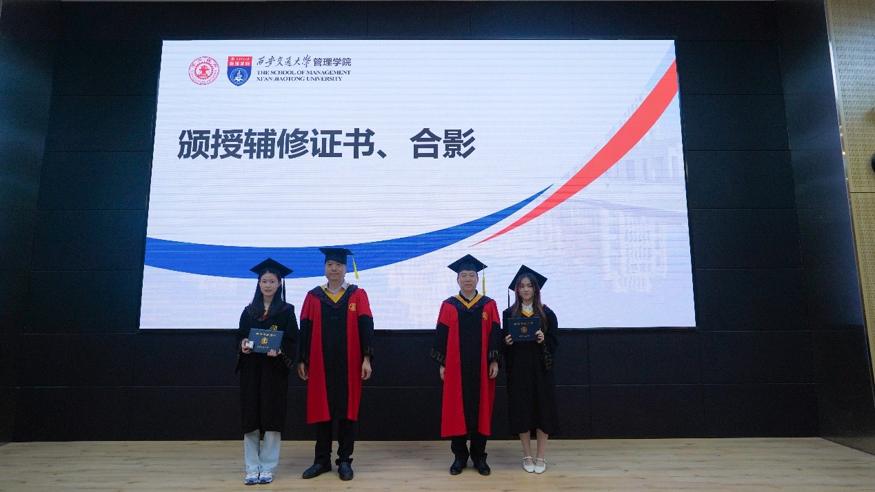 副院长田高良教授为学生颁发证书与院徽,标志着他们在交大的ACCA学业圆满完成。