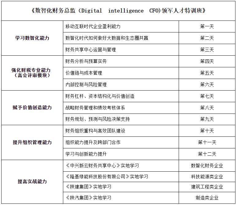 1、《数智化财务总监(Digital intelligence CFO)领军人才特训班》推荐报名表;